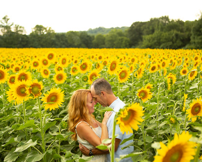 Kara and Bo happen to have a good friend with a farm, and the farm has not one; but two huge sunflower fields. Their September wedding will be decorated with sunflowers, so the timing... I mean season... and access to a private field was just too good to pass up.